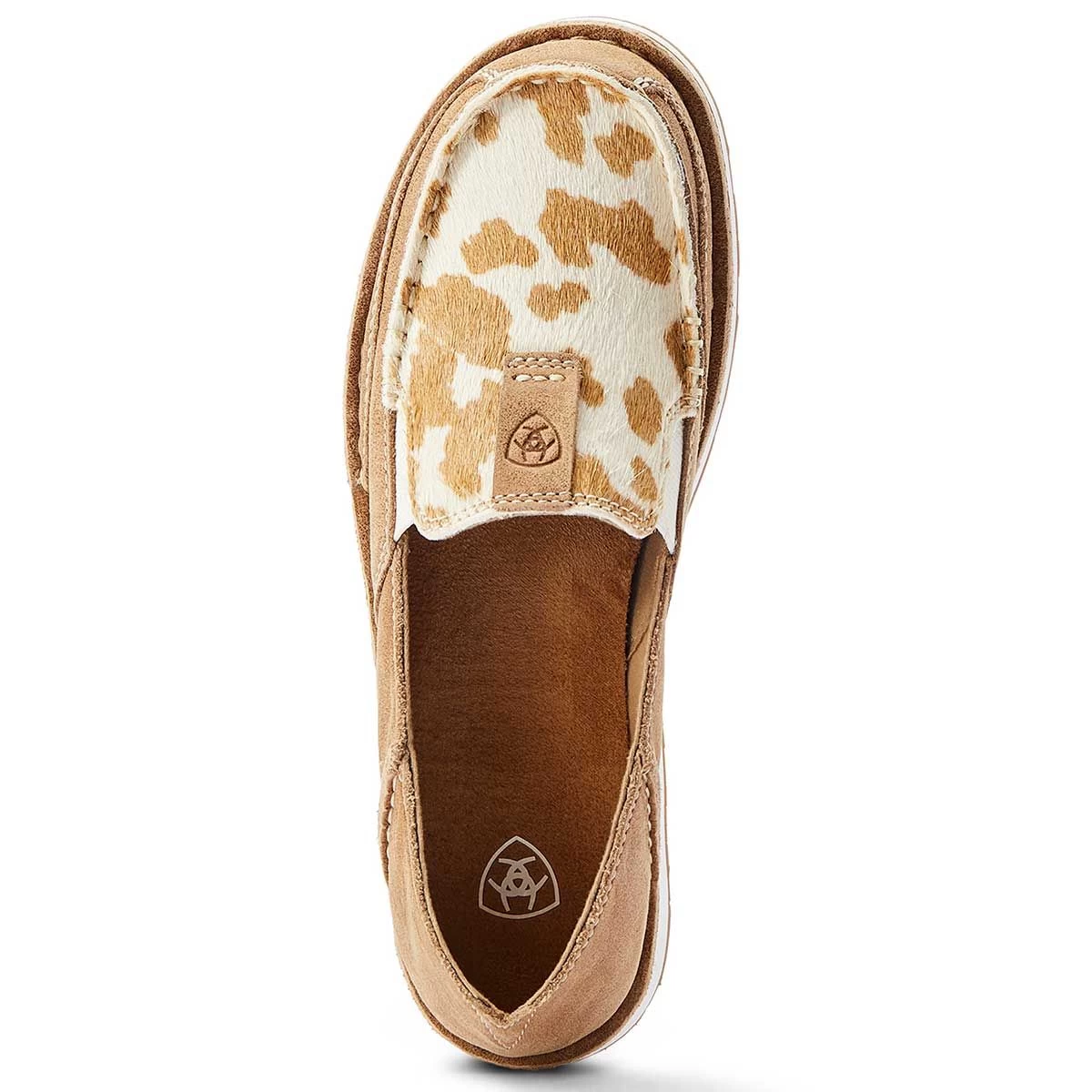 Ariat Adobe Cowhide Cruisers from the Rugged West collection offer the technology you have come to expect from Ariat combined with comfort, stability, support and rugged western style. Equal parts cute and casual, they’re perfect for running errands or strolling around town or kicking off your boots after a performance in the arena. Adobe Cowhide features a rustic western tan and white cowhide hair on accented top with rugged tan leather lower for the perfect combination of boho western and vintage vibe. With so many colors and patterns, it’s temping to collect them all..