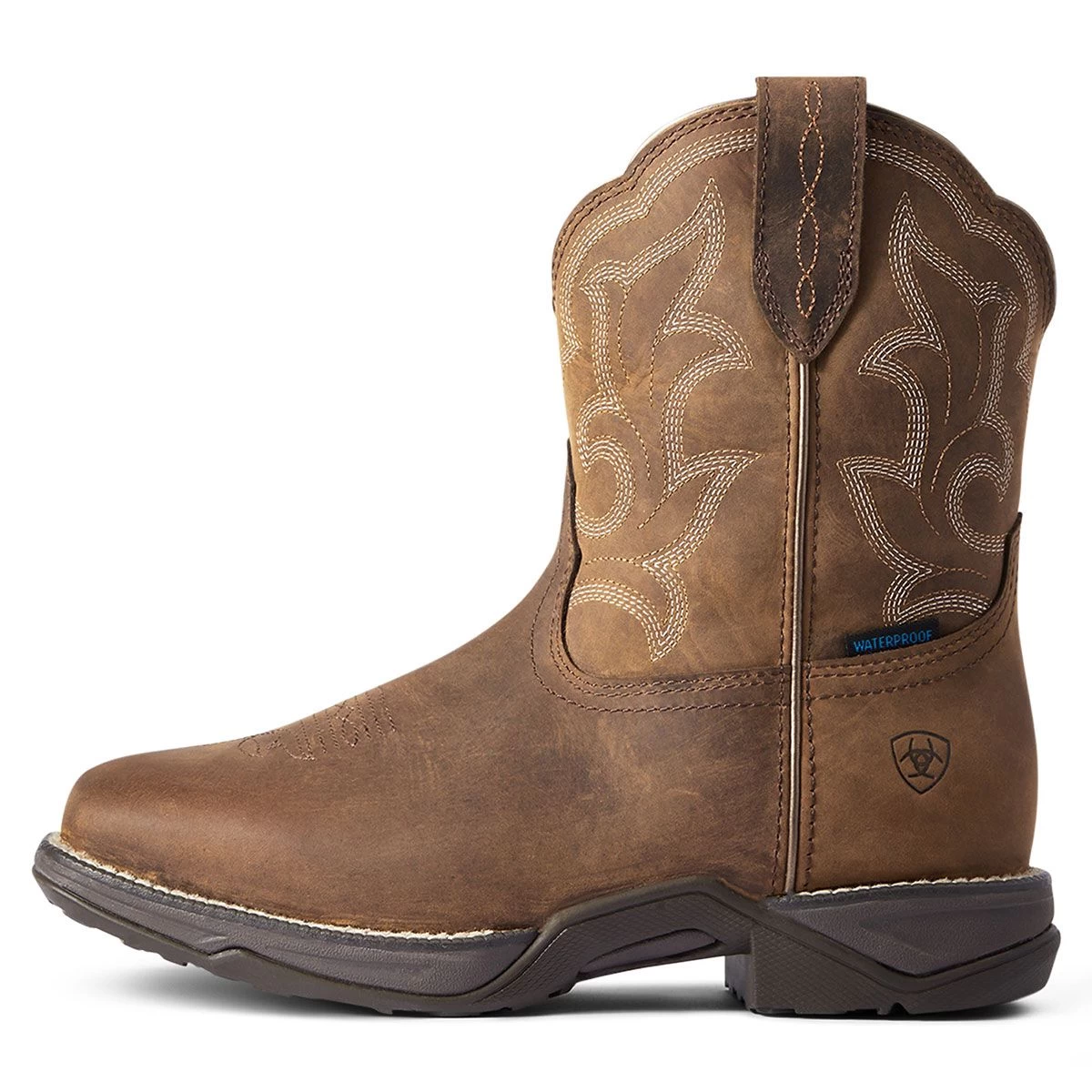 The Ariat Anthem Shortie II H20 Ladies Western Boot raises a toast to working cowgirls everywhere! This stylish, upgraded and rugged Western boot is equipped with full waterproofing to keep your feet dry all day! Its bold 5 row stitching on the upper makes a statement! It has an inner mesh lining to prevent your feet from overheating.