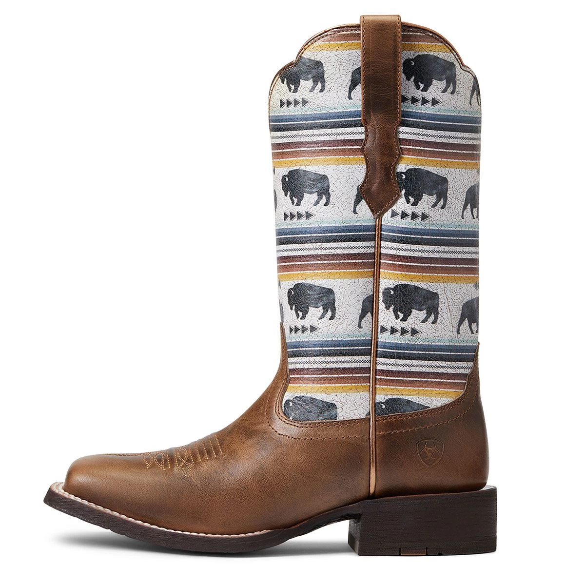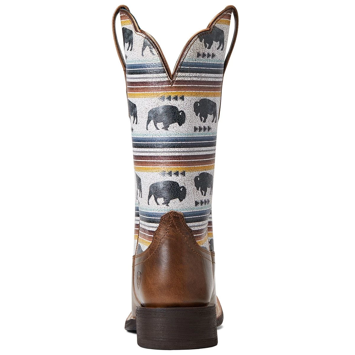 Ariat Circuit Savanna Ladies Western boot in Buffalo Print is where traditional design mixes with bright, fun fabrications for a fresh take on Western. This boot takes a page right out of the Old West with its rustic inspired vamp and twists it on it’s side with a fun printed upper. Ariat’s built-in features supply the comfort and stability you need in a style that is all you! Western performance never looked so good.