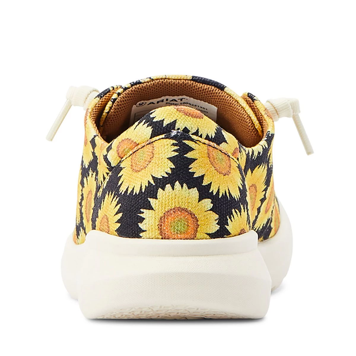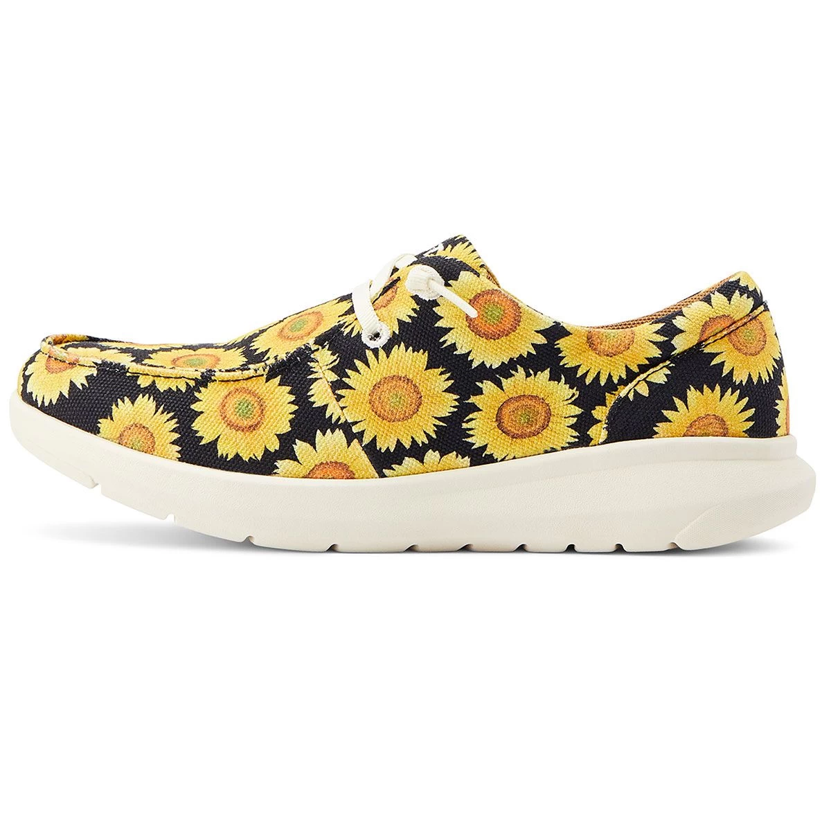 Ariat Sunflower Skies Hilo from Ariat’s Rugged West Collection features a fun, flirty, colorful Sunflower print on a black backdrop. The Hilo is an ultra cushy and super comfortable slip on causal that is the perfect kind of shoe to slip out of your boots, just throw on and go. With so many fun patterns and easy no-tie laces, you might want more than one pair.
