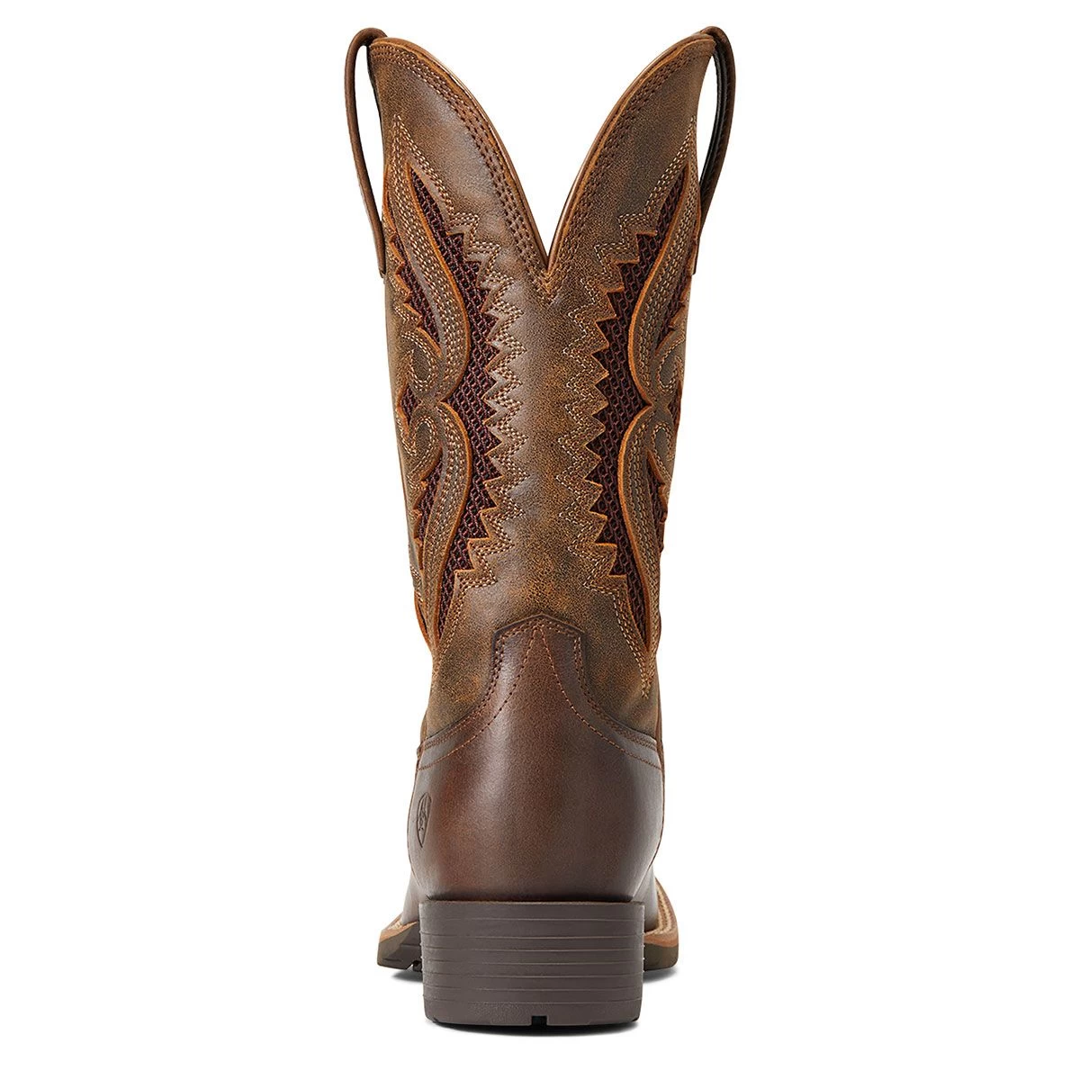 Keep your feet cool with the lightweight Ariat Hybrid Rancher VentTek 360 Ladies Western Boot. These leather boots have breathable mesh panels and DryFreeze temperature regulating lining. With an easy pull on style, these boots feature a contoured All Day Cushioning insole and a Duratread outer. Perfect for all day riding and barn work, choose these Ariat boots to keep your feet happy.