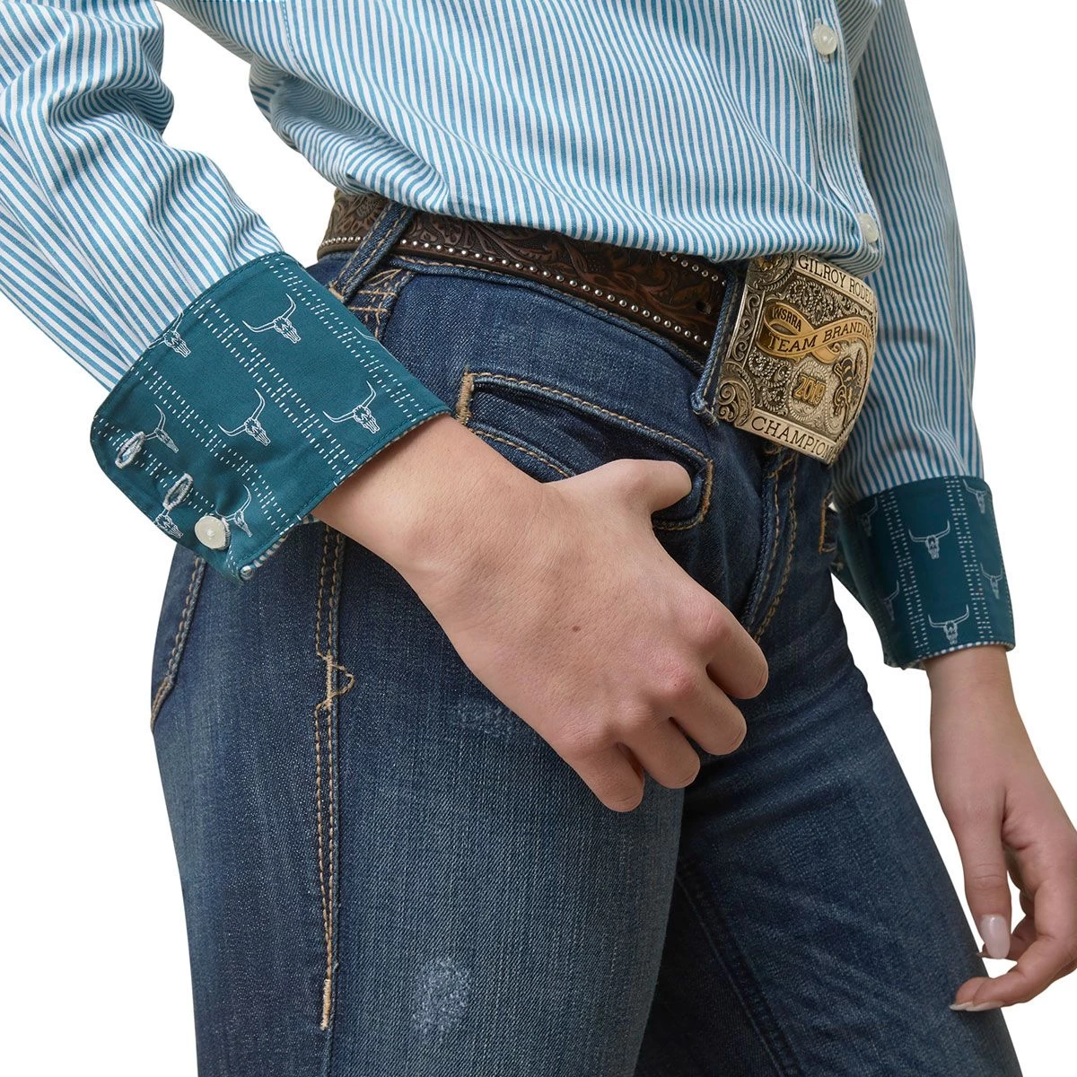 The Ariat REAL Kirby Western Shirt is wear tested by riders, incorporating performance fabrics and features for exceptional fit and durability. Every Kirby shirt comes with quality construction and eye catching good looks. Pair with your favorite Ariat jeans and boots to complete your look.