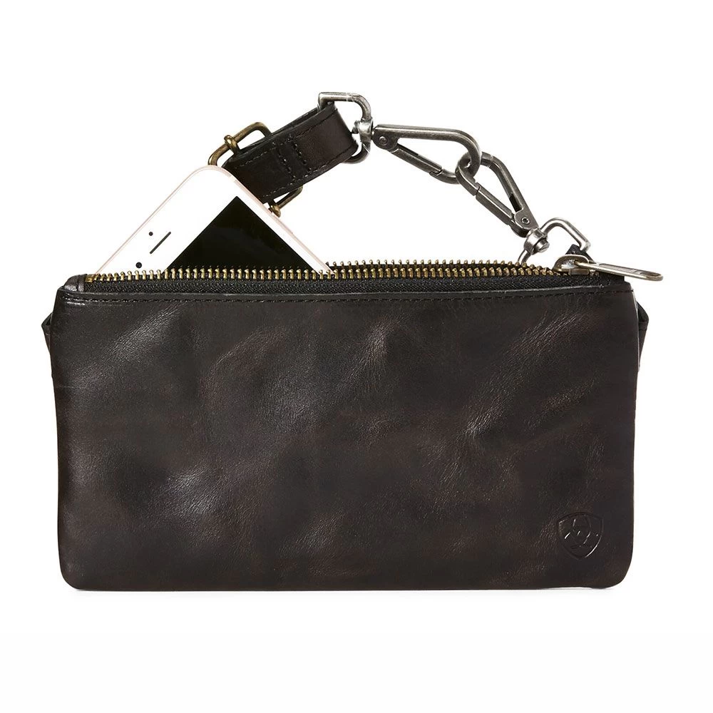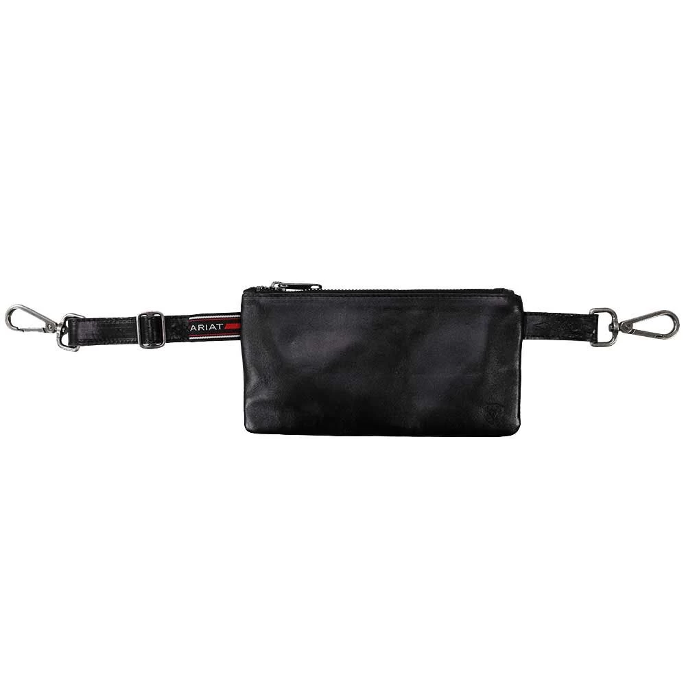 Ariat Mobile Caddy Belt is a styling way to carry valuables like cell phones, credit cards, ID, and lip balm while on the go. Beautifully crafted genuine leather, embossed with the Ariat logo features clips to secure to belt loops on breeches or jeans, as well as a zipper closure to keep items safe. Adjustable strap gives you a more perfect fit, and keeps your hands on the reins while riding. Trendy pouch looks great paired with your favorite cruisers or boots during event day or a night out on the town.