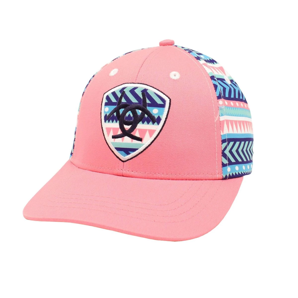 Ariat Pink Aztec Girls Baseball Cap features a trendy multi-color Aztec pattern on the shield and back with a pink front facet. Horse girls will be happy to show off their fashionable flair in this fabulous hat that closes with snap adjustments so she will get a perfect fit.