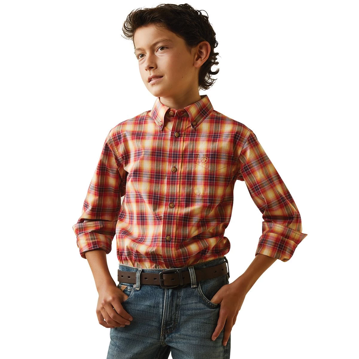 The Ariat Pro Series Boys Nayel Shirt is designed with professional riders and horsemen in mind, offering great style and unbeatable durability. Ariat Pro Series performance shirts can withstand the toughest treatment and keep you looking good and staying dry at the same time! With ample fit, stay tucked shirt hems, and sun protection finish, this long sleeve shirt will be a favorite for any young bronco rider in training.