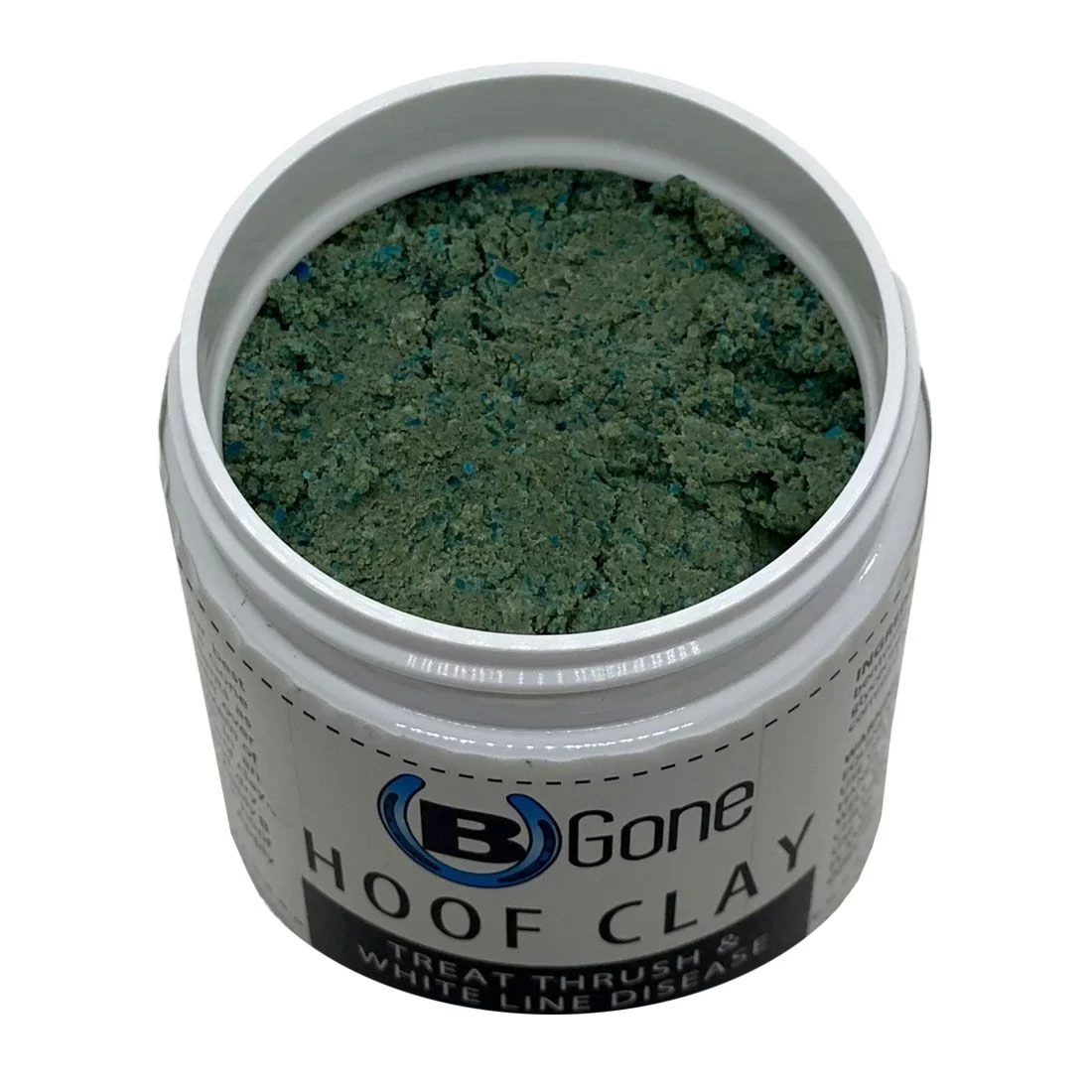 B Gone Hoof Clay treats white line disease and thrush with ease. Formulated with the same ingredients found in the B Gone syringe including copper sulphate, epsom salts, and tea tree oil. Effectively prevents thrush and fungal infections in nail holes, frogs, and heel crevices. Easy application for barefoot or shod horses. Apply to clean and dry hoof for best results. Safe for daily use until issue resolves.
