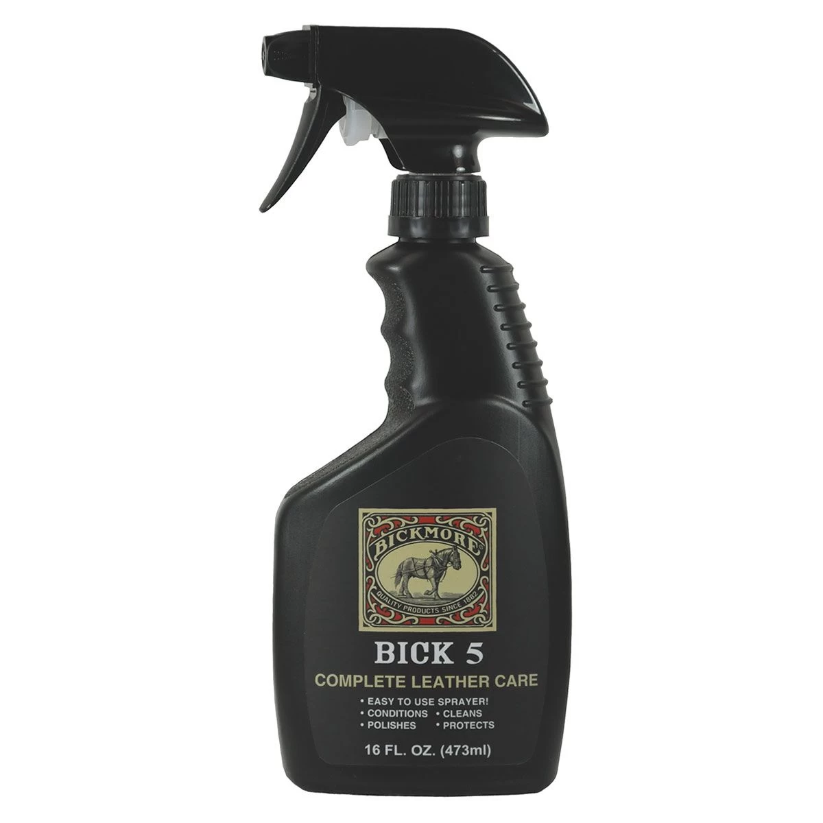 Bick 5 is a complete care leather product for all of your tack, harness and leather goods. The easy to use spray bottle makes this product great for larger areas such as furniture or leather car seats, and for getting in all the nooks and crannies of any exotic leather! Stronger than Bick 4, we recommend it for your heavy duty cleaning and conditioning needs.