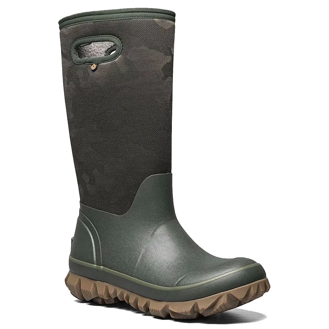 Bogs Whiteout Ladies Winter Muck Boot in Tonal Camo features 100% Waterproof construction from durable hand lasted rubber and with 7mm Neo-Tech waterproof insulation. Comfort rated to sub zero conditions, with added fleece lining for additional warmth, GlacialGrip slip resistant outsole for maximum traction on wintery surfaces and DuraFresh bio-technology that fights unwanted odors ideal for both warm weather and cold weather chores. Boots will keep feet nice and toasty in even the most extreme temperatures.