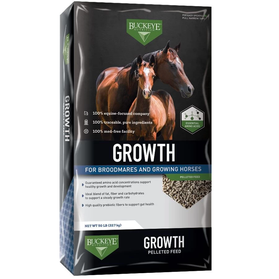 Growth Pellets by Buckeye Nutrition is scientifically formulated for the growing horse and broodmare to support healthy growth, development and metabolism.