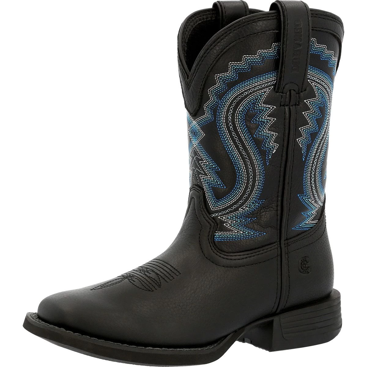 Durango Lil Rebel Pro Big Kids Black Onyx Western Boot is the perfect Youth Boot for heading to the arena or every day wear. The Lil Rebel Pro features a soft mesh lining, cushion flex insole and dually shank system to provide long lasting comfort and stability for your young rider. The Durango collection of kids’ cowboy boots have the same technology and comfort as the adult versions, so your little cowboy or cowgirl has the right style for the right situation and can be just as comfortable and stylish as Mom and Dad.