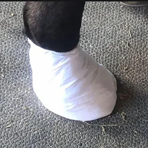 Equine Block Socks nerve block the foot and help prevent foot soreness during workouts, training and racing. By using a proprietary blend and heat to block the foot. Easy to apply as they come backed with adhesive, apply from 90min to 9 hours out from the event. Most trainers apply the Block Socks from 5-6 hours out. Each package comes with 2 Equine Block Socks and a free sample of the Pus Pocket Rocket Abscess Enhancer to help with horses that are prone to Abscesses. The Pus Pocket Rocket is applied directly where you think the hoof is the softest or where you think the abscess is going to come to a head. Wrap with cotton, finish with cling wrap and leave overnight.