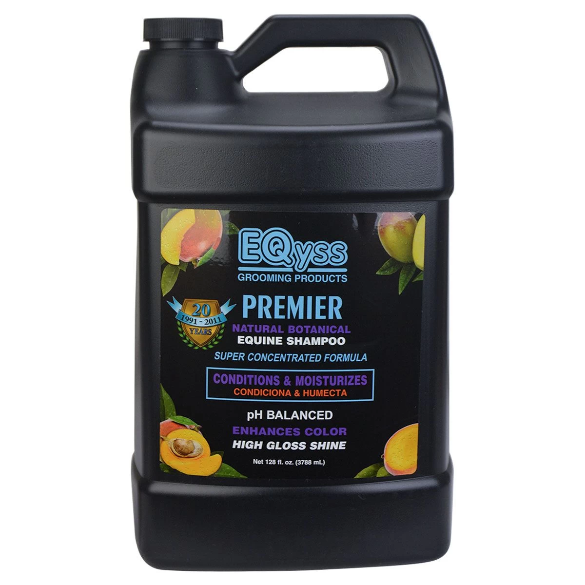 Premier Horse Shampoo by EQyss Grooming Products is gentle yet effective with botanical cleansers that enhance brightness and intensify coat color. Adds luster to coats, manes, and tails. This tropical scented shampoo leaves the hair shaft completely clean and free of debris or coatings which allows your horse to cool out faster after exercise