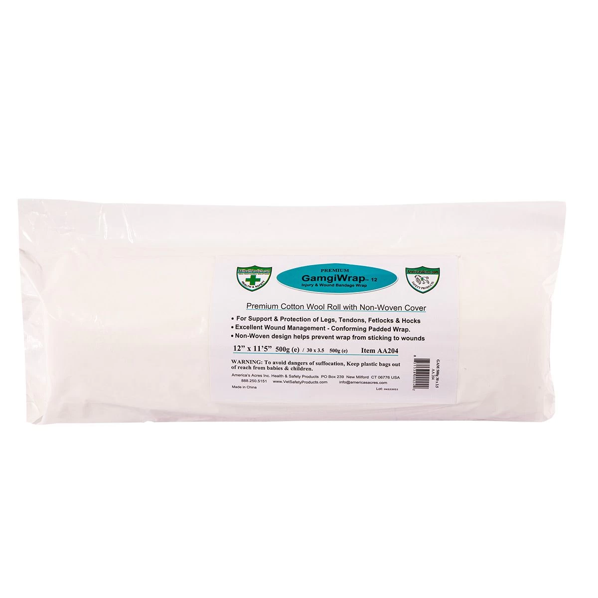 100% Cotton Wool Padding with Non-Woven Cover. For support and protection when wrapping legs, tendons, fetlocks and hocks.