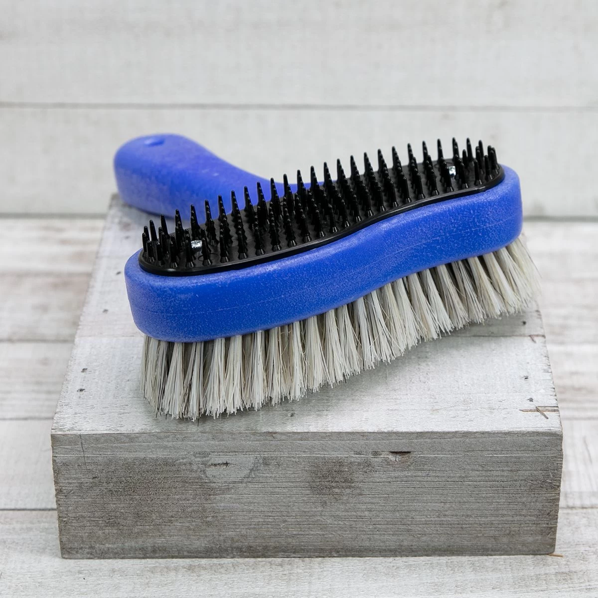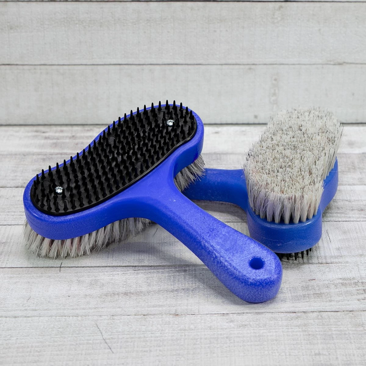 Haas Putzi Double Sided Brush is a unique double sided brush featuring soft horsehair on one side and a massaging curry on the other side and is perfect for cleaning heavy dirt from the hoof, mane or body. The ergonomic handle fits easily in the hand. Haas high quality brushes feature soft bristles and synthetic backs for a hygienic and durable brush that will easily become a go to favorite!