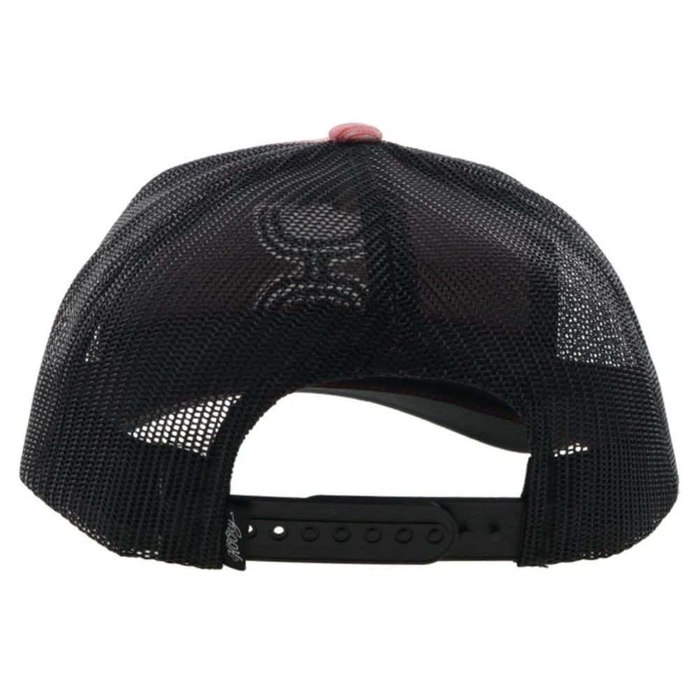 The Hooey Sterling Red Trucker Hat features a red heathered base with a black and white contrasting logo and black mesh. This mid profile hat as a one size fits most with 6 panels and back adjustability. With a traditional front bill and back mesh, this hat is comfortable and breathable.