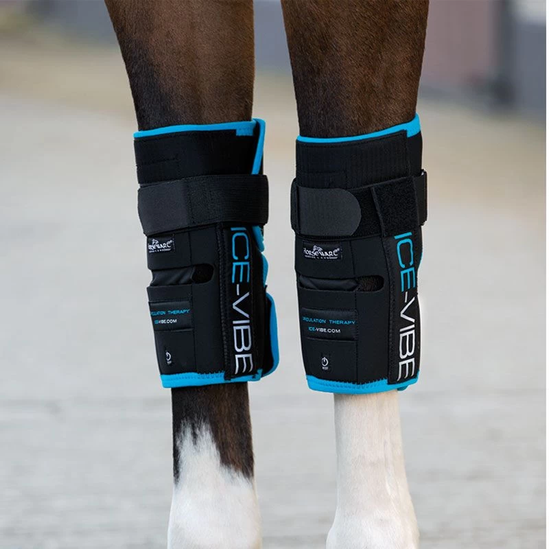 Horseware ICE-VIBE Knee Wraps feature the latest technology for racers, eventers or any equine athlete. These rechargeable boots provide a cooling and massaging effect that encourages movement of the lymphatic system, drains inflammation and stimulates repair to the damaged tissue. ICE-VIBE boots can be used before exercise to reduce risk of injury. Use for rehab to help to reduce soreness and swelling, boost circulation and stimulate healing.
