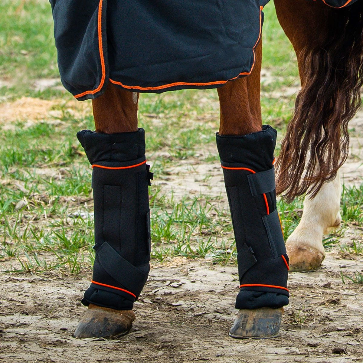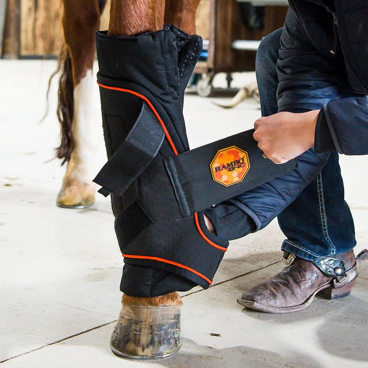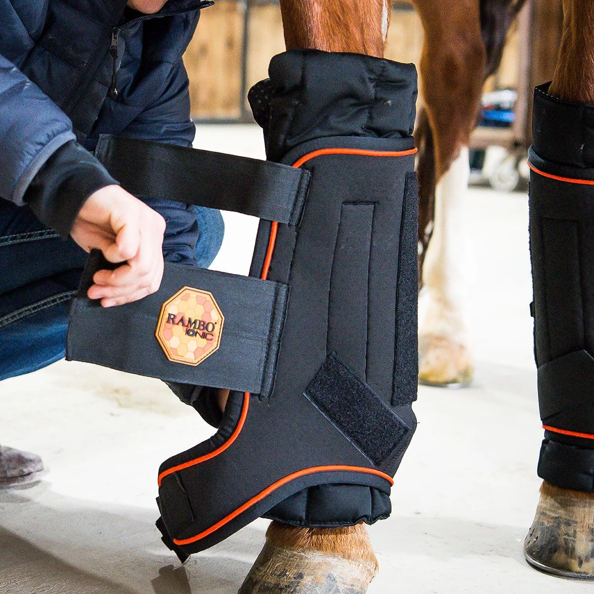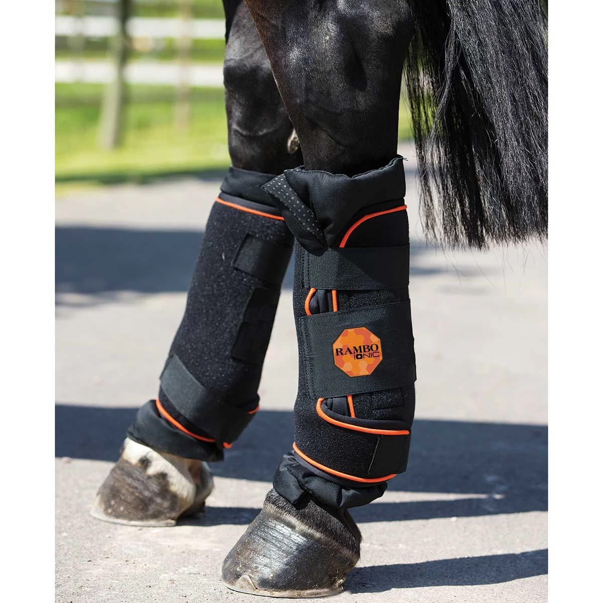 Promote circulation with Ionic technology. Rambo Ionic Stable boots can be used inside or during shipping. Prep your horse’s leg for exercise or help them recover after exercise and reduce any lactic acid build up. Rambo Ionic harnesses the power of tourmaline, a naturally occurring crystal that, when ground down to powder form, releases an electric charge which converts the surrounding air molecules to negative ions. These negative ions are absorbed by the body and impact the size of the water molecules in our blood stream. They reduce its physical size by neutralizing the waters natural positive charge which allows the water molecule to flow faster through our bodies, thus bringing increased oxygen and nutrients to the muscles. Negative ions for positive results.