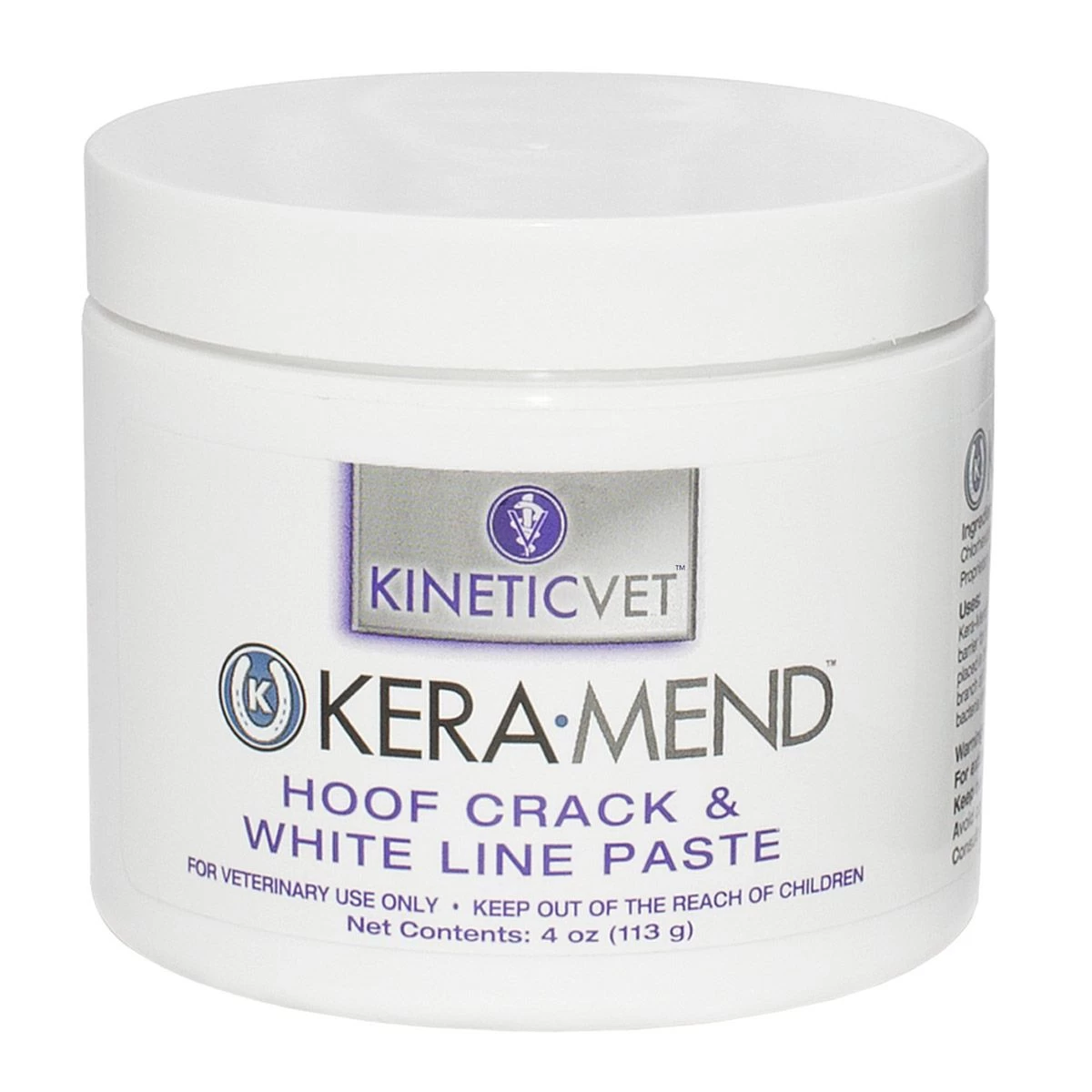 Hoof Crack and White Line Paste by Kinetic Vet was formulated by veterinarians and veterinary podiatrists. Kera Mend provides an antiseptic/anti-fungal barrier for hoof cracks, white line disease and resolving hoof abscesses. Kinetic Vet’s formula is great for under pads and glue-on shoes to keep the area free from bacteria and fungi. Kera Mend helps to prevent re-infection.