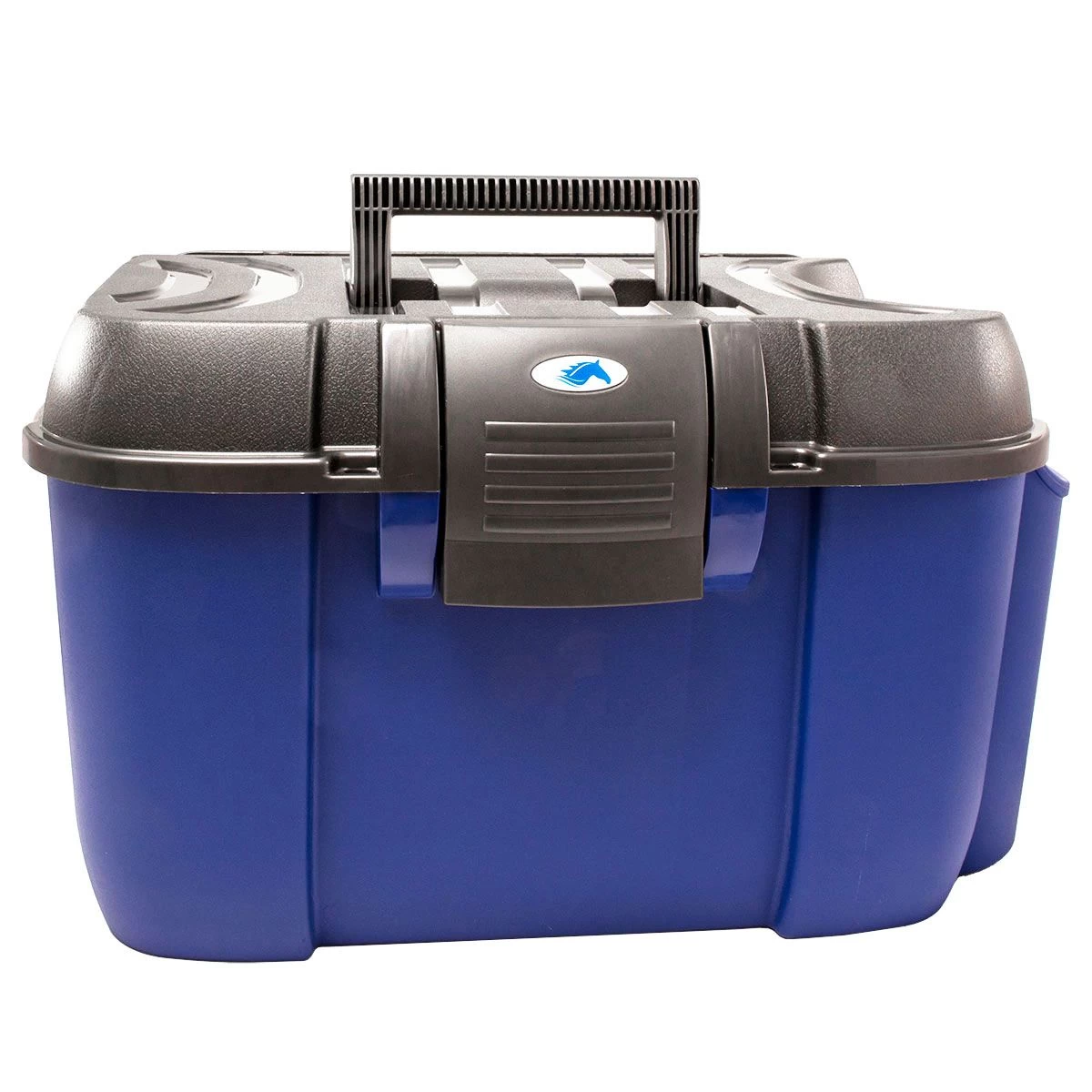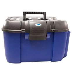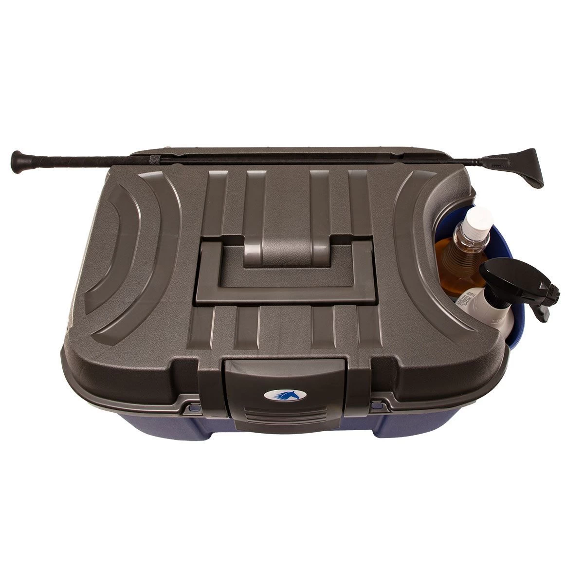 The Koala Grooming Box is a must-have to securely store all your grooming essentials. This durably crafted tote boasts ample inner storage with a genius “side pouch” to hold your fly spray or other quart size grooming products. Removable inner tray designed to store small brushes, combs, and braiding bands so they do not get lost amongst larger items. Thoughtfully designed with premium features including reinforced closure that can be padlocked and also a built-in whip holder on the lid. Vertical inner divider for added organization which can be removed for maximum storage space. Convenient removable hoof brush holder securely stores your hoof oil brush and keeps it separate from your other brushes so they do not get dirty. Sturdy, reinforced lid with tread pattern allows this grooming box to double as a mounting step in a pinch, designed to hold up to 250 lbs. The perfect grooming box for easy storage at the barn or for travelling to horse shows.