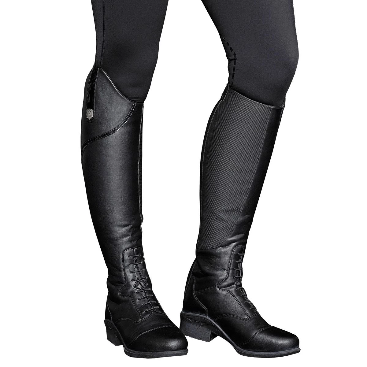 Mountain Horse Veganza Ladies Field Boots are constructed of materials that support a vegan friendly lifestyle, meaning no animals were used in any part of it’s creation. Vegan friendly will ring true to those looking to support a more sustainable, environmentally friendly lifestyle. These beautiful, well-balanced boots provide an attractive look in the arena with care-free maintenance. Featuring a comfortable ergonomically designed removable insole and back elastic gusset for a sleek and comfortable fit. Dirt repellent tread zones and slim outsole perfect for riding. The Veganza is a boot that not only looks great in the competition arena, but you will feel great choosing.