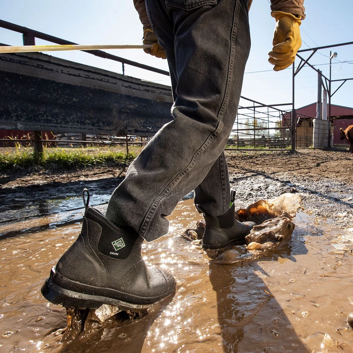 Muck Boot Company Chore Classic Chelsea Mens Muck Muck Boot from the Chore Collection is an one of Muck Boot Company’s toughest boots for the muckiest conditions. This 100% waterproof boot comes in an easy on/off height ideal for work. Designed to keep your feet warm and dry with 5mm Flex-Foam neoprene liner offers excellent heat retention properties, with breathable mesh to ensure year-round comfort. The bio DEWIX antimicrobial footbed topcover with NZYM controls odor and moisture ensuring your feet remain comfortable all day. The Chore Classic is just the boot to get the tough jobs done!