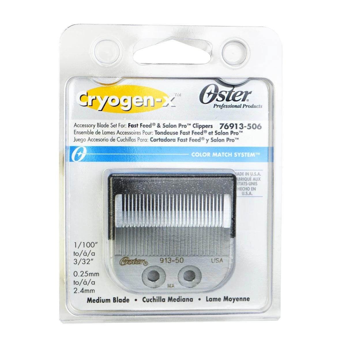 Oster Cryogen-X Accessory Clipper Blade Set adjusts from very close to medium length. 1/100″ to 3/32″.