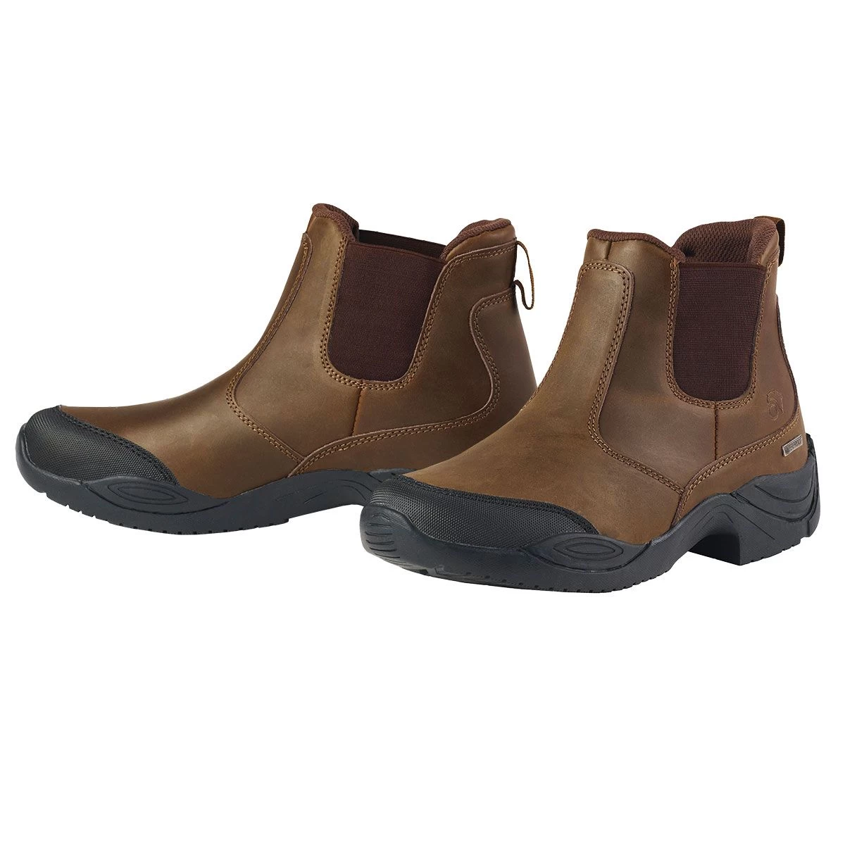 Who says barn boots have to be boring? The Ovation Slip On Muckmaster Barn Boot provides long-lasting durability and all-day comfort! Features waxed Crazy Horse genuine cowhide leather on a rubber anti-skid, oil-resistant sole with that is designed for riding with stirrup stopper heal. A waterproof and breathable membrane guarantees protection from the elements, ideal for trail or for barn work. The fashionable, casual design is also at home on the streets and easily pairs with your favorite pair of jeans.