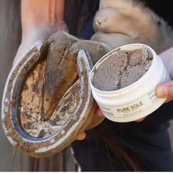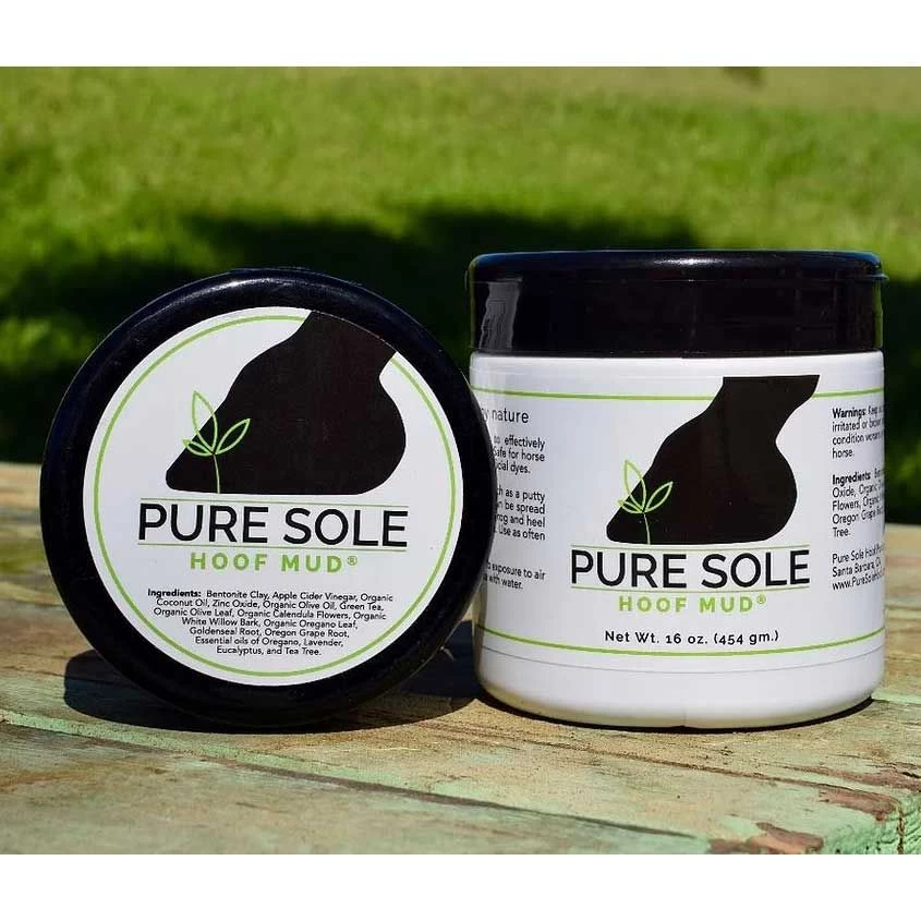 Treat hoof infections with natural Pure Sole Hoof Mud. Made with herbs, oils and apple cider vinegar, this mud is ideal for treating thrush, seedy toe, heel infections, cracks and hoof wall separation. Pure Sole is easy to use as it’s made with Bentonite Clay and can be used with shoes or under pads as well. Hoof Mud can be used for horses with sore soles as well. Effective and natural, no staining either!