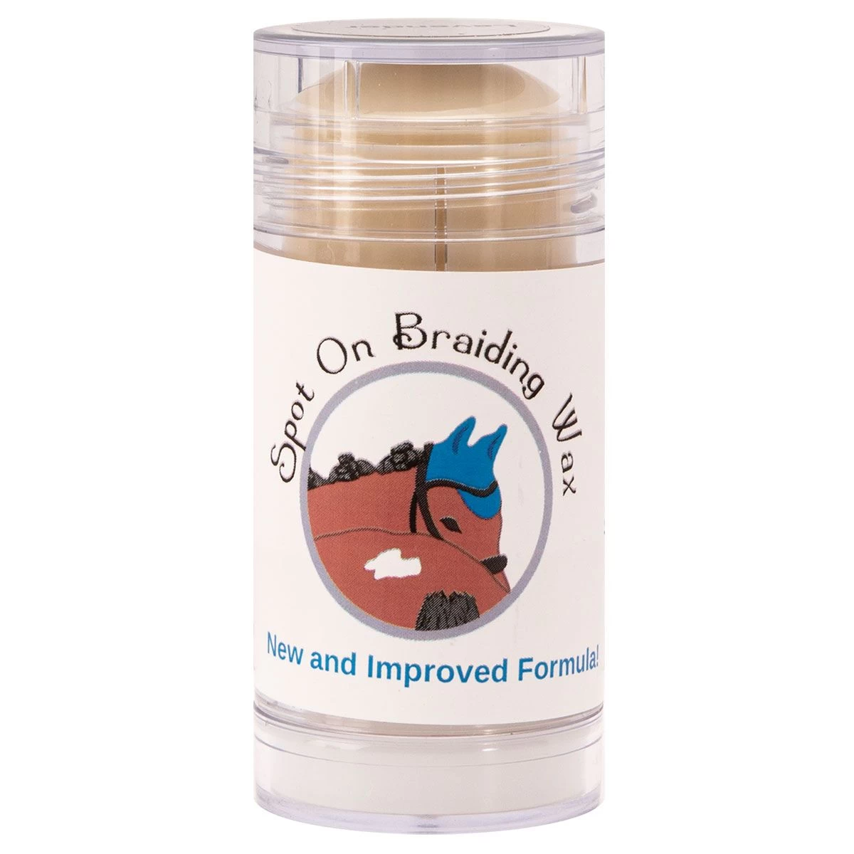 Braid like the pros with Spot On Braiding Wax! Each tub of rub-on Braiding Wax maximizes shine and grip while still providing a soft, “uncrunchy” texture and easy-wash properties. Each container contains a nourishing fortifying blend of Beeswax, Shea Butter, Jojoba Oil, Vitamin E, and other natural ingredients to promote healthy mane and tail condition while providing a no-slip effect when braiding or plaiting.