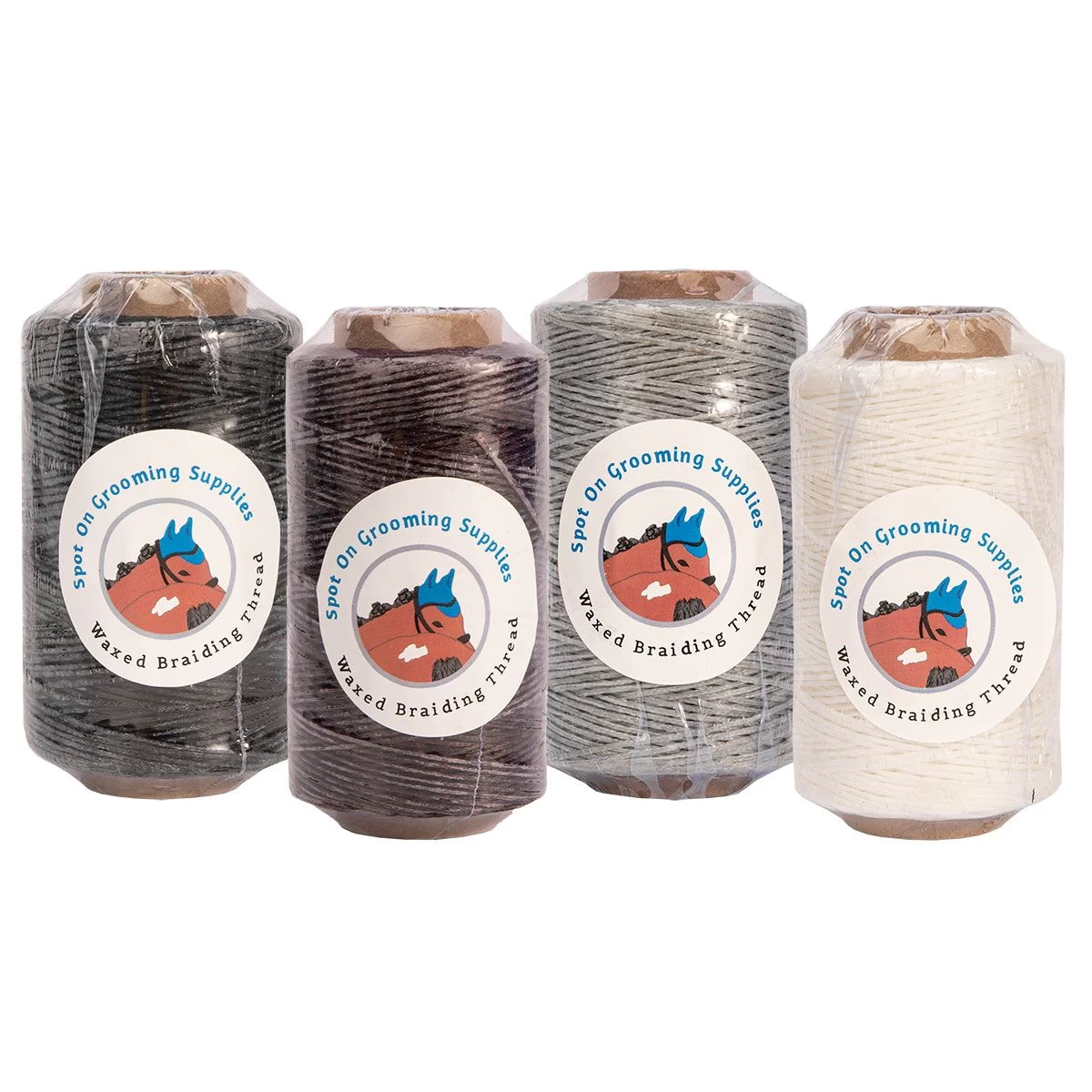 Braid like the pros with the Spot On Waxed Braiding Thread. This unique product combines sturdy braiding thread and sturdy wax to provide more grip and strength than plain thread or yarn to create neat and secure braids. Available in a wide variety of colors to perfectly match your horse’s mane, each thread roll provides up to 820 feet!
