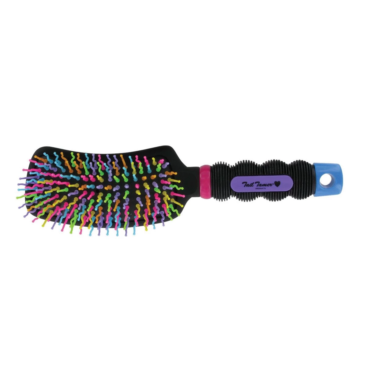 The Tail Tamer Rainbow Mane & Tail Brush by Professional’s Choice provides easy brushing and smoothing unruly hair. Designed with comfortable ergonomic handles, each brush features unique bristles that are safe for wet or dry manes and tails without causing breakage or damage. Heavy duty and built to last, these are a perfect addition to any grooming kit.