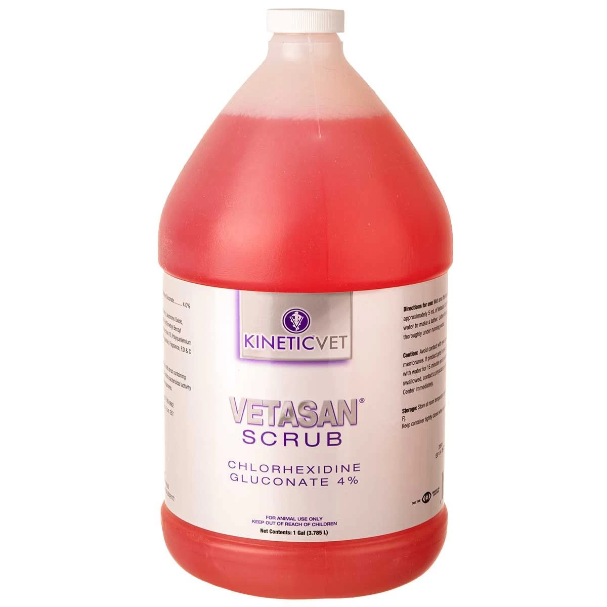 Vetasan Scrub is a mild scrub containing chlorhexidine gluconate that exhibits bactericidal activity against a wide range of microorganisms. Contains 4.0% Chlorhexidine Gluconate