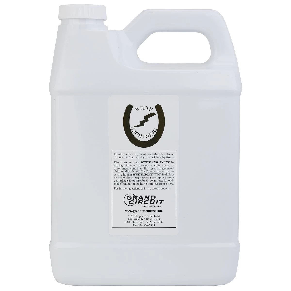 White Lightening Liquid When mixed with equal parts of white vinegar, the solution will produce chlorine dioxide. Chlorine dioxide is very aggressive in neutralizing bacteria, fungus and yeast, and has been proven to be highly effective in the treatment of White Line Disease, Thrush, and Hoof Rot.. White
